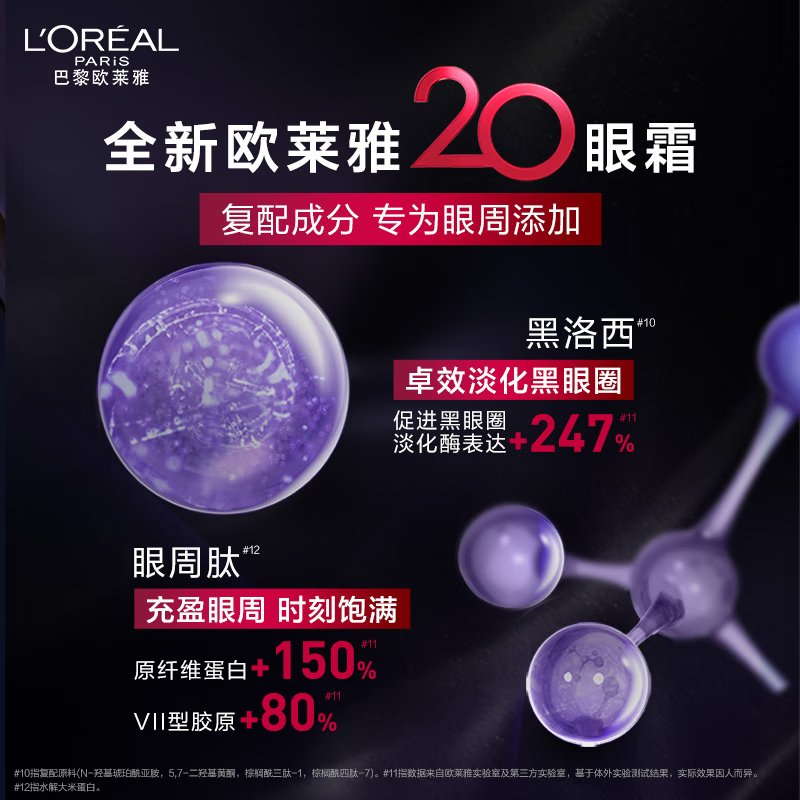 欧莱雅复颜玻尿酸水光充盈焕颜淡纹眼霜 20ml