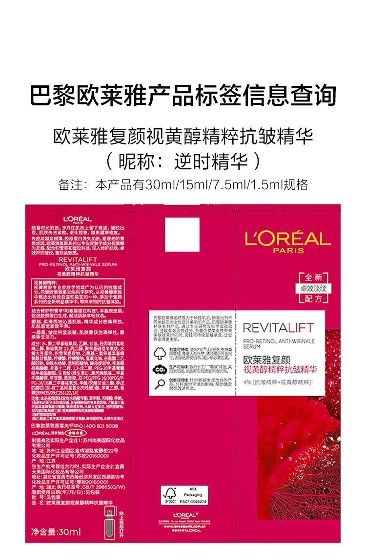 欧莱雅复颜视黄醇精粹抗皱精华 30ml