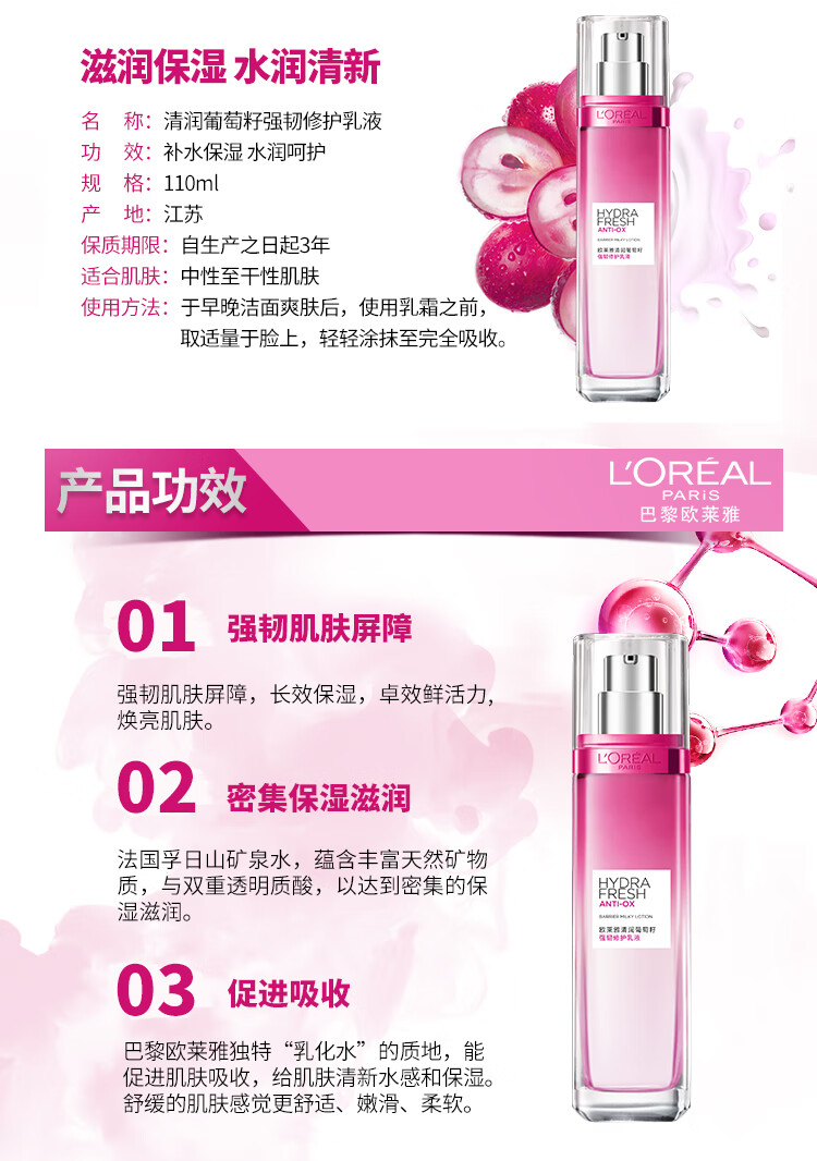 欧莱雅清润葡萄籽强韧修护乳液 110ml