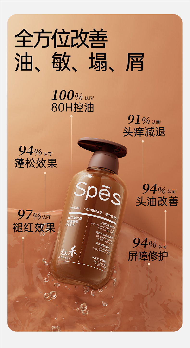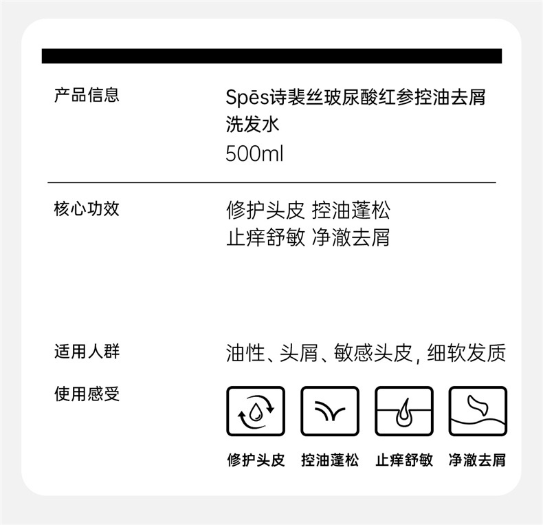 Spēs诗裴丝 玻尿酸红参控油去屑洗发水 500ml