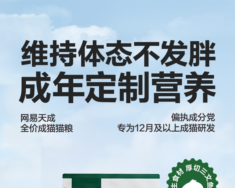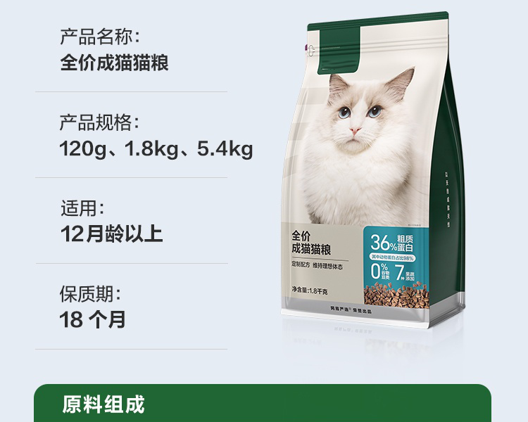 成年猫专属营养,维持体态,促排毛球